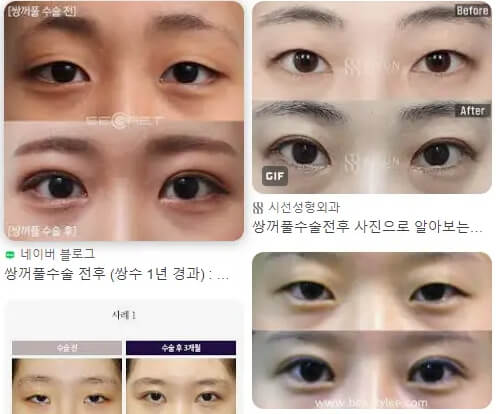 - 눈 윗부분의 외꺼풀을 찝어내어 인공적인 쌍꺼풀을 만드는 수술